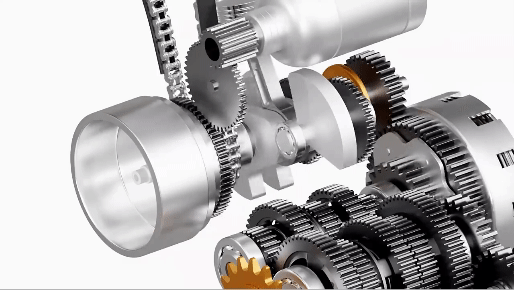 Kako bi se motocikl kretao on koristi benzinski motor i to onaj sa unutrašnjim sagorevanjem. To znači da se sagorevanje vrši unutar cilindra. Sklop se nije drastično menjao od šezdesetih godina pa tako imamo cilindar, zatim klip koji se u njemu kreće između gornje i donje mrtve tačke, klipnjače koja vezuje klip za radilicu, radilice koja je pričvršćena za zamajac. Karter, odnosno kućište, čini temelje celokupne konstrukcije. Na njegovim zidovima nalaze se ležišta radilice u kojima se obrće radilica. Princip rada motora zasniva se na činjenici da se usled eksplozije koja nastaje paljenjem smeše gasova u cilindru oslobađa velika količina toplote usled koje raste pritisak koji spušta klip u donji položaj pri čemu se pravolinijsko kretanje klipnjače pretvara u kružno kretanje radilice koje se zatim preko svih sklopova prenosa prenosi na zadnji točak.